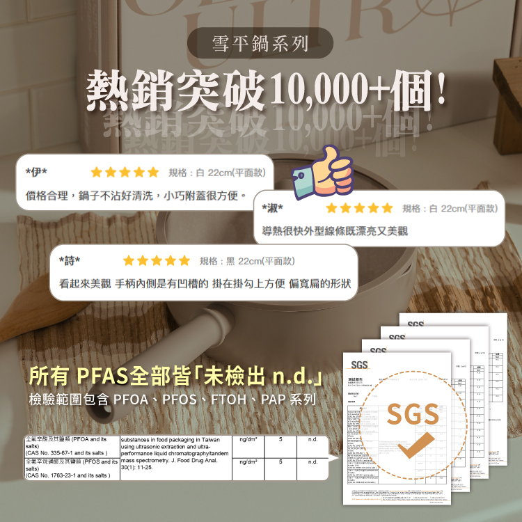 •SGS檢驗合格,不含PFOA&PFOS&PFAS