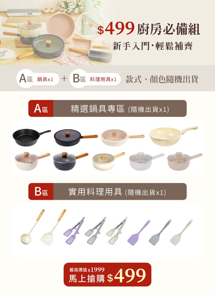 •內含鍋具X1 + 料理用具組X1